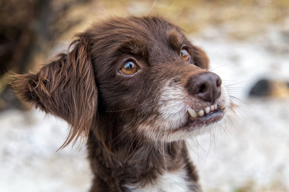 Brachycephalic dogs like Pugs, French Bulldogs, and Shih Tzus have the same number of teeth as other dogs but far less room. Teeth rotate, overlap, and crowd, trapping food and speeding up plaque and gum disease. Baby teeth may not fall out on time because permanent teeth come in at the wrong angle. Teeth exposed to the air due to underbites are more prone to disease due to the lack of normal saliva around them.